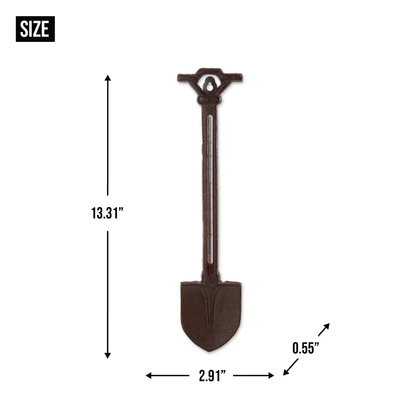 • Cast Iron shovel shaped thermometer weighs just under 1 lbs. and measures 3x.0.25x13.75 inches.
